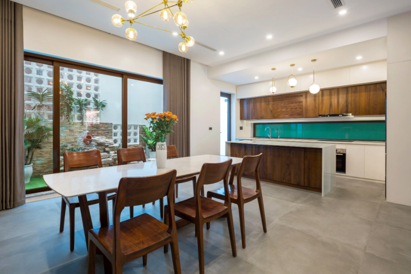 Khu vực bếp và ăn uống liên thông với phòng khách